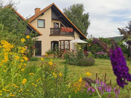 Vom Wohnzimmer aus kann man eine kleine Loggia mit Tisch und Stühlen betreten und den Ausblick auf die Umgebung genießen, oder in Ruhe in der Sonne sitzen.